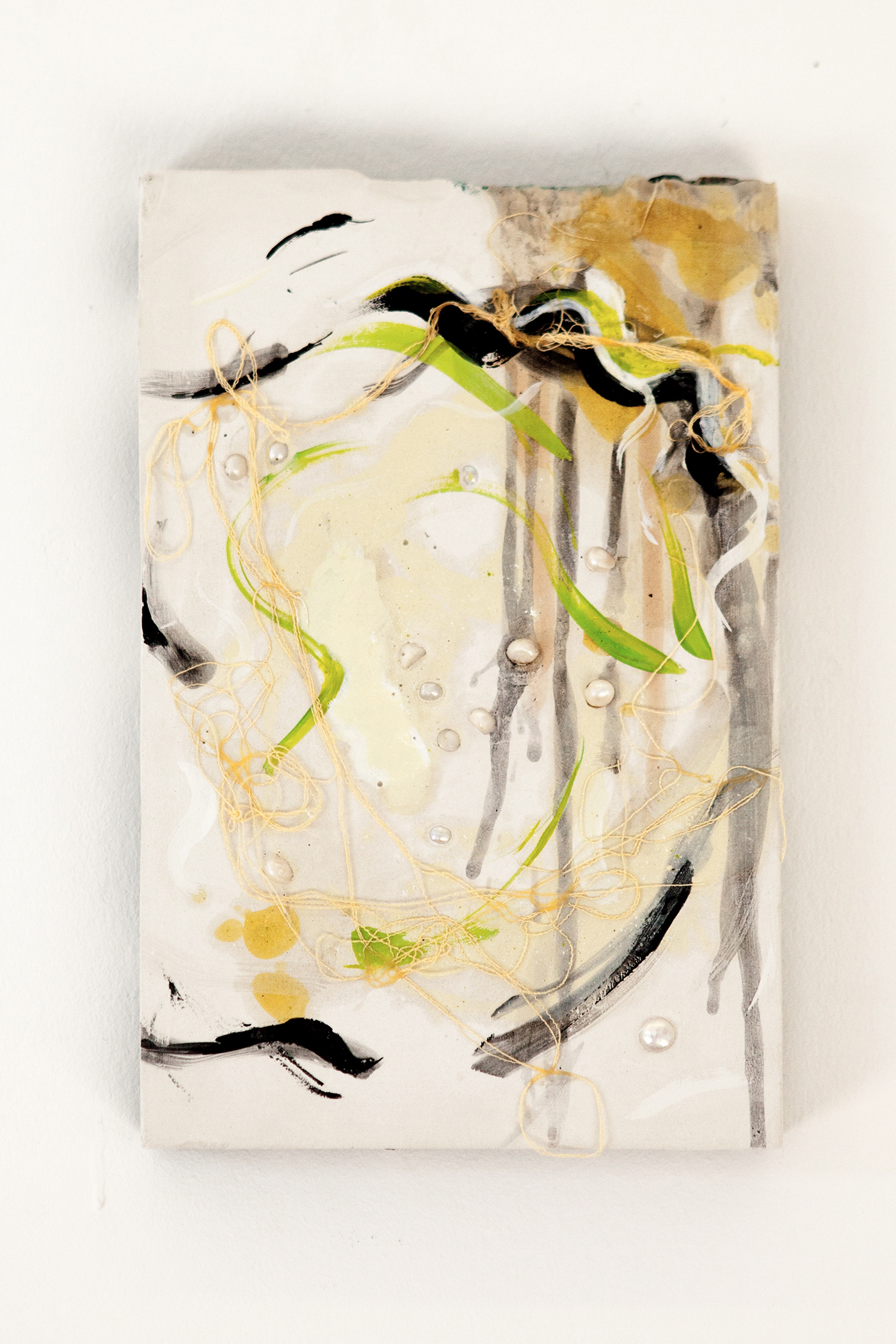 series of ten paintings; acrylic, oil, pigment, herbal infusions, artificial pearls, threads and spirulina on plaster mounted on canvas